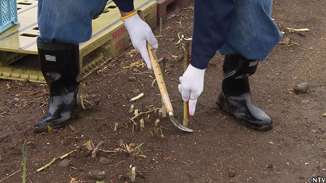 アスパラガスは生長速度がバラバラであるため、機械で一気に収穫することができない。