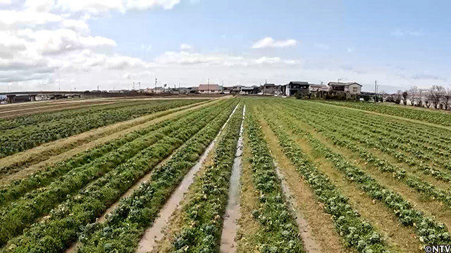 田んぼの土は粘土質で水持ちがよく、越冬ブロッコリーは雪も相まって定植から水やりを1度も行わない。