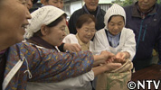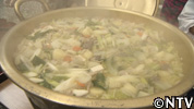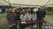 精米し、昨年同様、DASH村の仲間たちが、明雄さんが野菜を作る畑に集合。一年ぶりに会う方も多く、みんなで久しぶりの再会を喜んだ。DASH村で定番だった豚汁とお漬物で、新男米の大収穫祭を行なった。