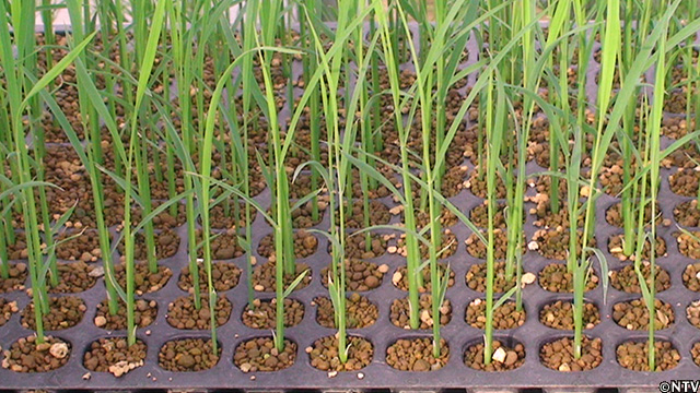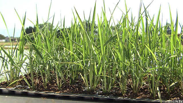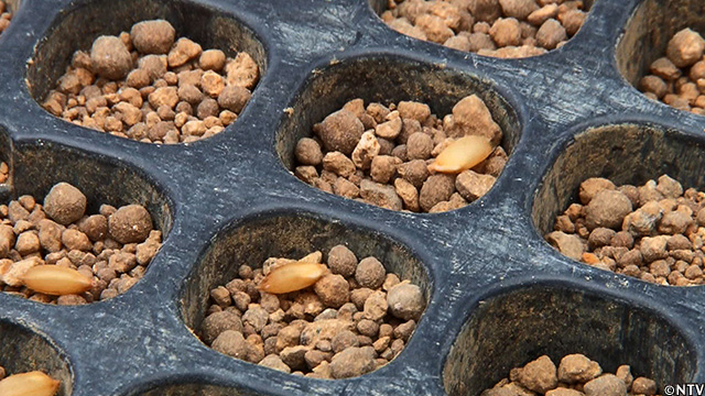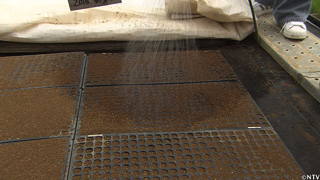 →育苗箱1つに対し、およそ6000粒種が蒔かれている。