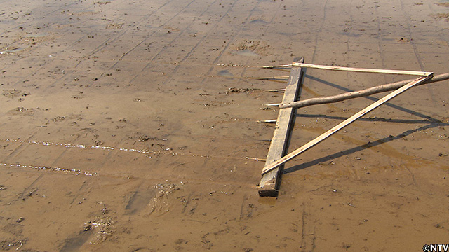 →沈んだ種もみは、真水で洗い塩分を取り除く。