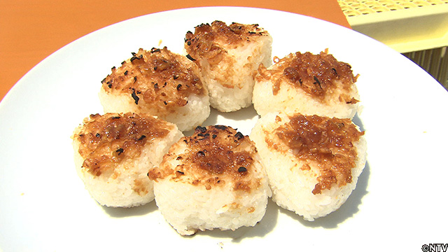 それで、醤油とネギ味噌をつけた焼きおにぎりを作る。
