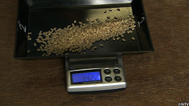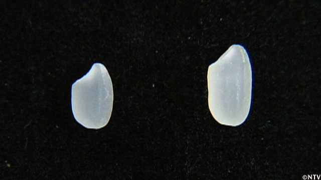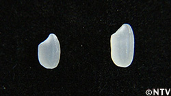 遠藤さんの米との違いは、「米粒の大きさ」新男米と比べると遠藤さんの米は大きく、その分、美味しさの源、でんぷんが多く詰まっていた。