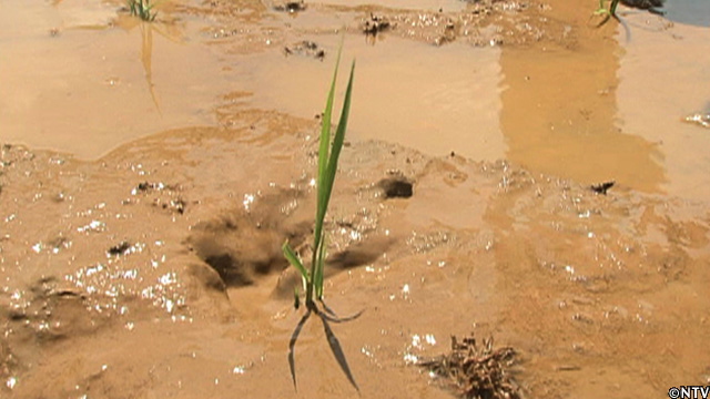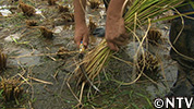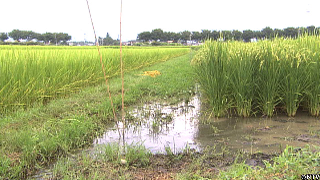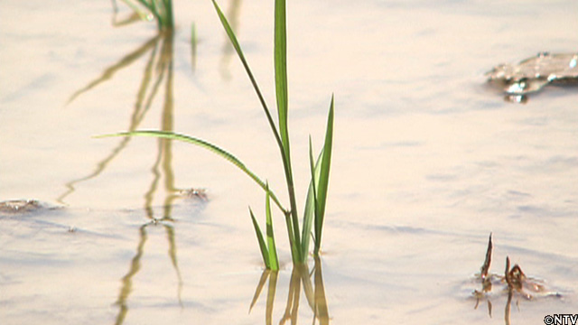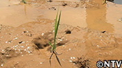 田んぼの周りの気温が下がる。水を入れるだけで、田んぼの気温が最大で5℃程度も下り、稲の生長に必要な活動が再開され、猛暑の中でも、実の詰まったお米を作ることができる。