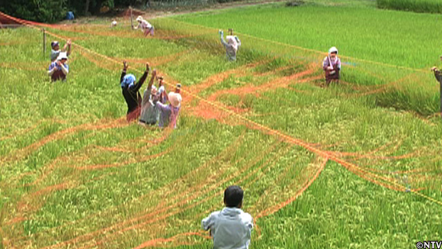 一等米を獲得したことを村の仲間に報告し、皆と味わう。