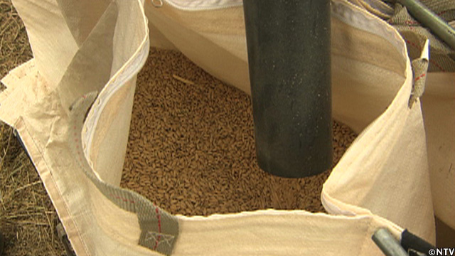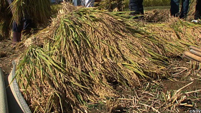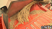 3週間、天日干しで乾燥した籾は丁度いい水分量に。難波さんのハーベスタをお借りして脱穀。