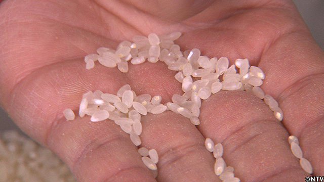 ふくおとこの玄米を精米すると、割れた米が目立った。