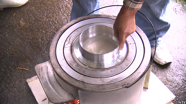 羽釜は米の美味しさにこだわる日本で生まれたと言われ、鎌倉時代には武士や貴族の間で使われていた。800年経った今もおいしくご飯が炊ける羽釜。