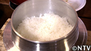 鍋の場合は底にしか熱が伝わらず、ムラができるが、羽釜の場合は、羽の下の部分がすっぽりと入るので、釜全体で熱を受け、米ひと粒ひと粒に熱がムラなく伝わるため、ごはんが美味しく炊き上がる。
