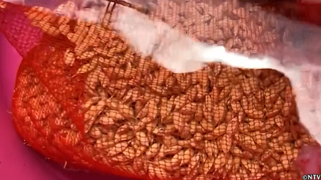 身が詰まった良い種は水洗いして天日干しをする。
