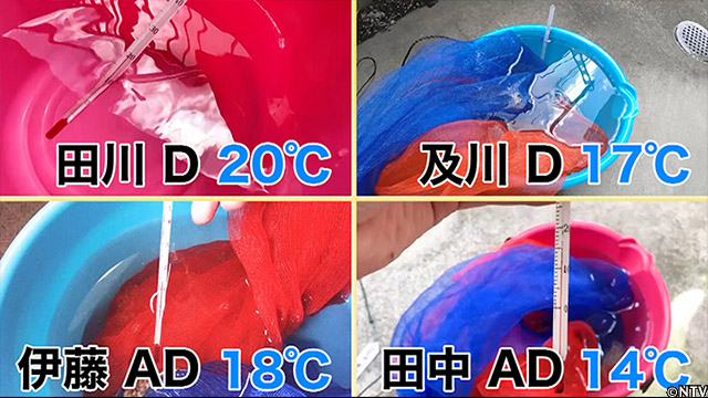 福島の雪解け水は地下を通って湧き出るため水温は常に一定しているが、東京の水道水は、住む地域によって浄水場が違うため温度が変わる。