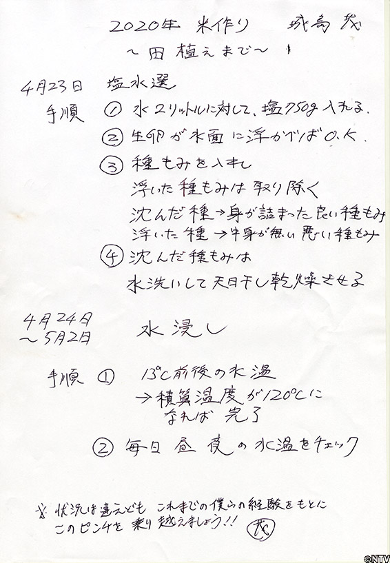 前回TOKIOは、より美味しいお米を作るため、去年収穫した「ふくおとこ」の種を城島・太一・松岡がそれぞれ選び、3パターンの種類に分けて、種まきと田植えを行なった。