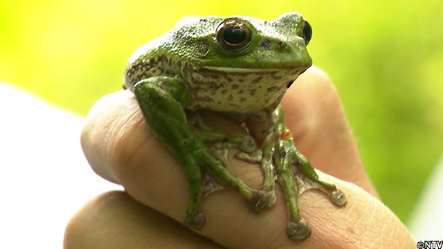 多くのカエルは水辺に住み、ゼリー状の卵を産むが、このモリアオガエルは登った木の枝の先で