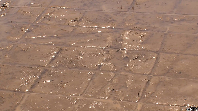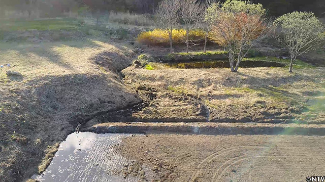 除染後1年目となるこの田んぼは、生い茂っていたススキや木を根こそぎ掘り起こしたので、土がガタガタ。