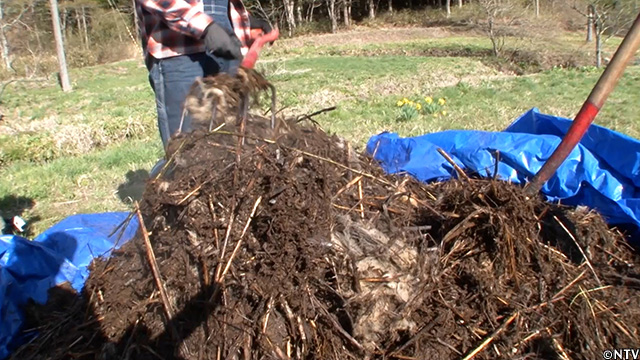 土の中の微生物が堆肥を食べることで稲に必要な栄養素が生まれる。