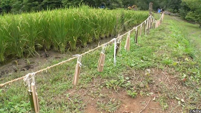 音の鳴る竹鳴子や鈴などを利用して、イノシシから大切な作物を守ってきた。