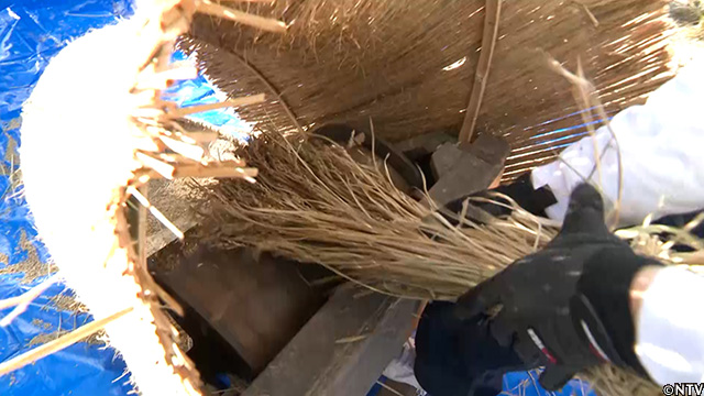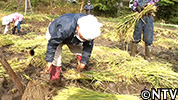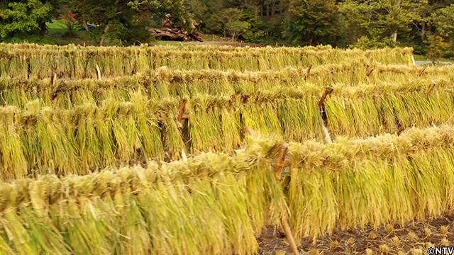 難波さんの田んぼをお借りしていた時は、「棒がけ」という方法で乾燥させていたが、今年の田んぼは福島DASH村と同じ、「はせがけ」で乾燥させる事に。