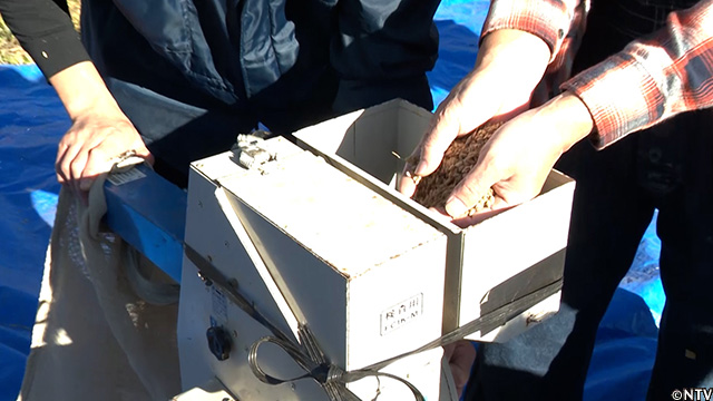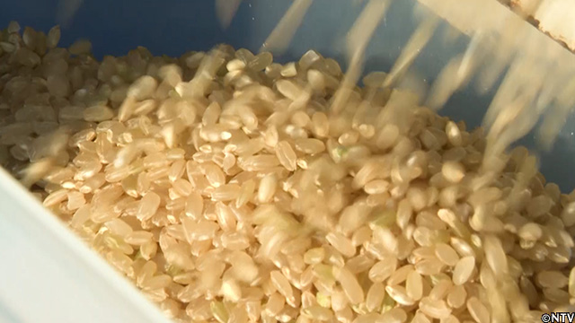 葛尾村では、収穫された全ての米に放射性物質検査が義務付けられている。