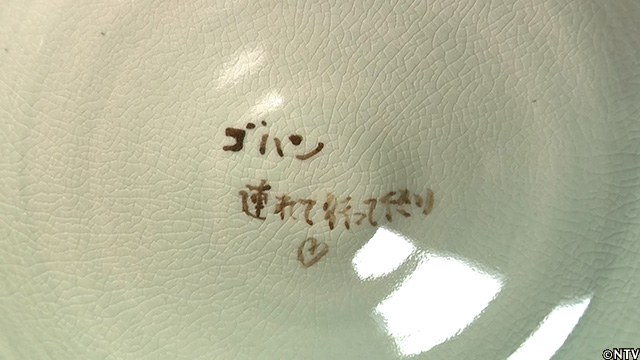茶碗の底には「ゴハン連れて行って下さい♡」とメッセージ入り。