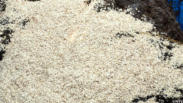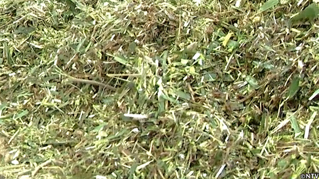 田んぼに生えていた篠竹を、粉砕機を使ってチップ状に。