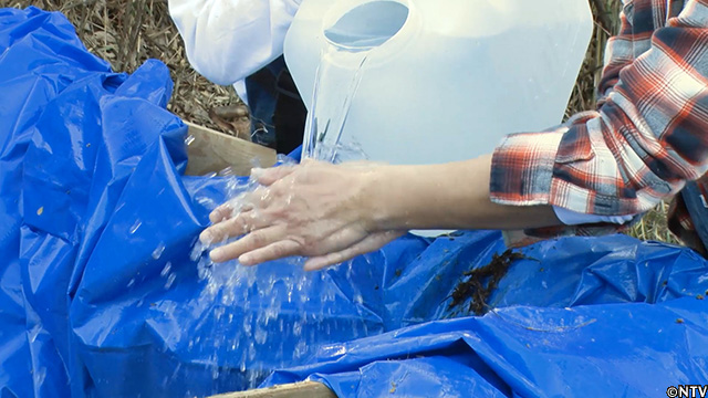 地下1200mから汲み上げた温泉を、アットホームおおたまの國分純一さんから分けていただいた。