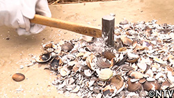 炭火で15分程焼いて粉々に砕き、土に撒くことで土壌のカルシウム補給に。