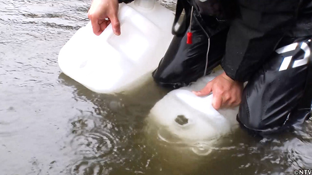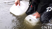 今年はシンタローのアイデアで、福島から300キロ離れた横浜DASH海岸の海水を使用した。