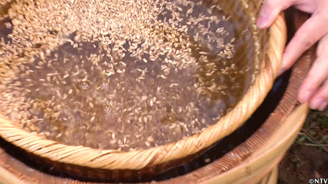 種を塩水に浸すことで良い種を選りすぐる方法。