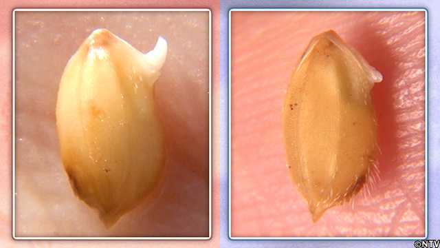 中身が詰まっていない軽い種は浮き、しっかりと中身の詰まった良い種は沈む。