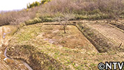 30年以上作付けが行われていなかった、草木が生い茂る7段の元棚田を地元の皆さんの手助けを受け、4枚の田んぼに復活させた。