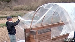シンタローのアイデアは半分ビニールハウス、半分小屋のハイブリッドにすること。