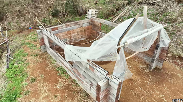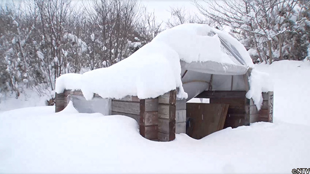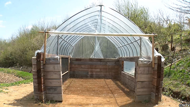 雪で潰れてしまった屋根は、強度を上げるためビニールハウス用のパイプを使用。
