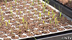 棟梁・シンタローがアップデートした苗小屋“DASHドーム"の中に設置した。