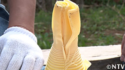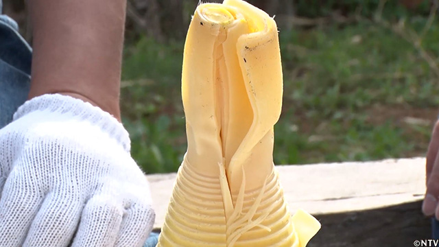 今回は、開拓を手伝っていただいた良一さんの家で、伸びきってしまったタラの芽をいただき、エキスを作った。