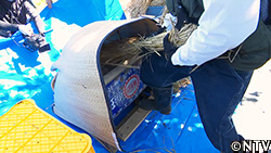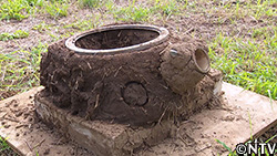 専次郎さん達に助言をいただきながら作った、カメの形をした『かめど』は、2週間を経て、若干のヒビはあるものの、順調に乾燥していた。