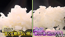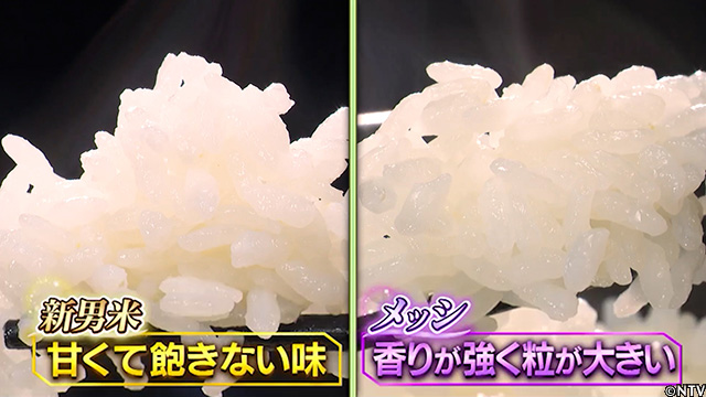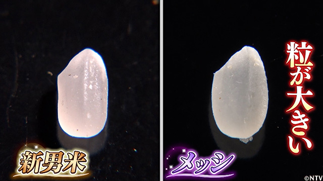 新男米を厳選しより良い粒で育てたメッシだと、明らかにメッシの方がぷっくりとしていた。