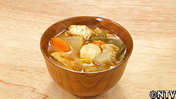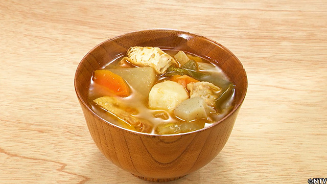 隠し味に、オイスターソース・醤油・コチュジャンを入れるのが松岡特製の豚汁レシピ。