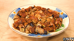 お肉は地元産のエゴマ豚を使用し、ナスを継ぎ足して142cmの肉巻きに。