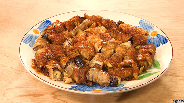 畑で採れた茄子を使って、ナスの肉巻きを。