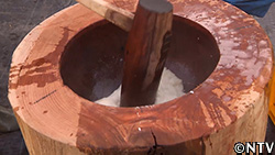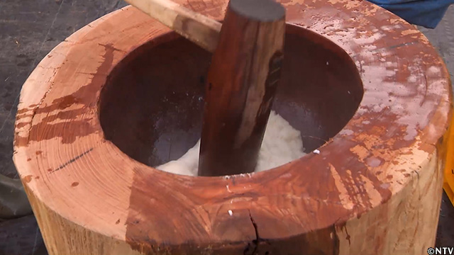 こねることで、滑らかで粘りのある餅になるという。