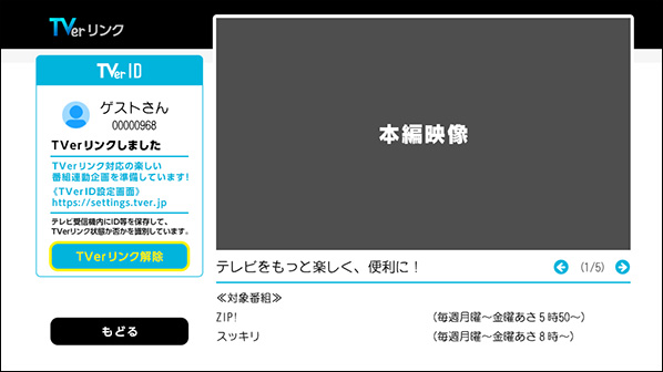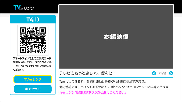 4TVer IDにログイン後、データ放送画面左下の【TVerリンク】ボタンを押せば、設定完了です。