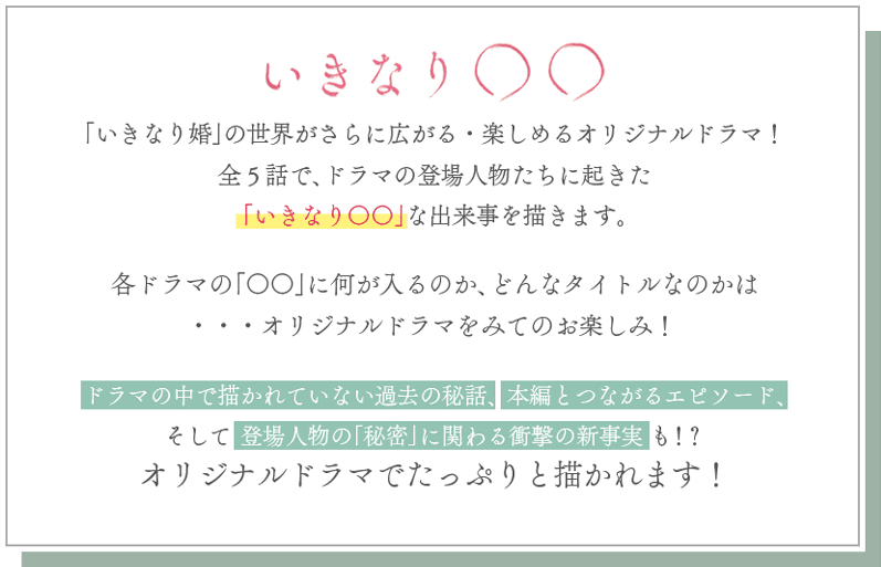 今回の主人公は、真央の後輩・八木優花(工藤遥) ある日のランチのあと、優花に“いきなり”な出来事が起きていた・・・!ドラマ本編6話にもつながるエピソード!見たらきっとニヤニヤが止まらない!!