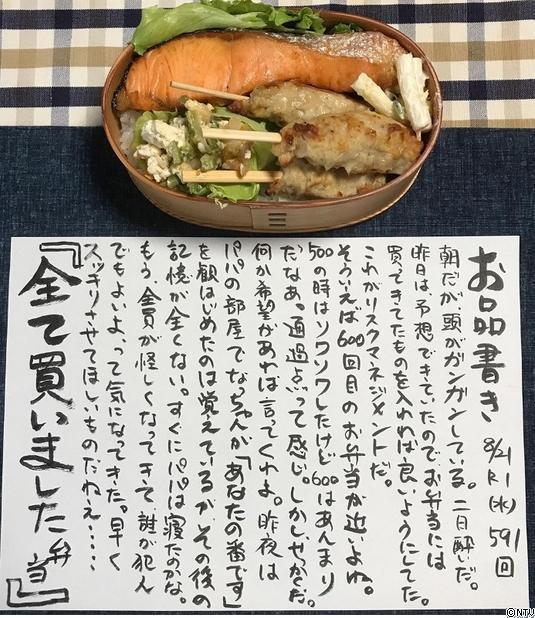 料理経験なし、せいぜい焦げた焼きそば。そんな父が高校3年間、娘にお弁当を作り続けました。お弁当に必ず付いているのが父直筆の「お品書き」。お弁当のタイトルと共に部活や勉強のこと、時事ネタ、ダイエット速報...父のつぶやきを毎朝つづる。何気なく書いていたお品書きは、いつしか娘と繋がるかけがえのないものになっていました。この春、なっちゃんは卒業、最後のお弁当の日を迎えます。700回目、最後のお品書きの言葉は。