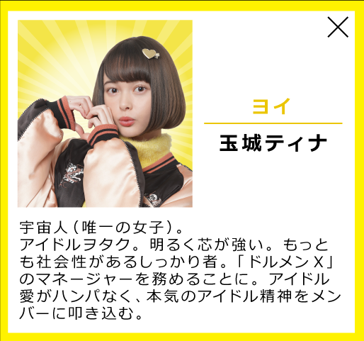 今回、原作を読むまでは宇宙人?何それコメディ?ギャグ?とか思っていたのですが、読みながらドルメンXもヨイも、人間らしさを身につけて行く様子に心を打たれどんどん感情移入して…最後には号泣で、大好きな作品になりました!このドラマはキャラクターもそれぞれ濃いですし素直に笑えるシーンもたくさんあるのですがセリフや感情の動き方にも注目してほしいなあと思います!忘れずヨイちゃんのハートピンにも♡