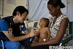 A Japanese doctor tends to a young earthquake victim