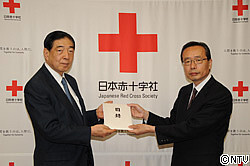 Japanese Red Cross Society President Mr. Tadateru Konoe (left) at ceremony