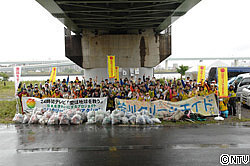 In the rain, 127 participants gathered plastic refuse and other garbage, filling up 109 garbage bags. A female participant in her 20s commented, "When I saw plastic bags being picked up as garbage, it made me realize that I should carry my own shopping bag to the grocery store." A mother and her elementary school-age child commented, "This is our second time to participate. By picking up garbage, my child has learned to treat items and living things with more care."