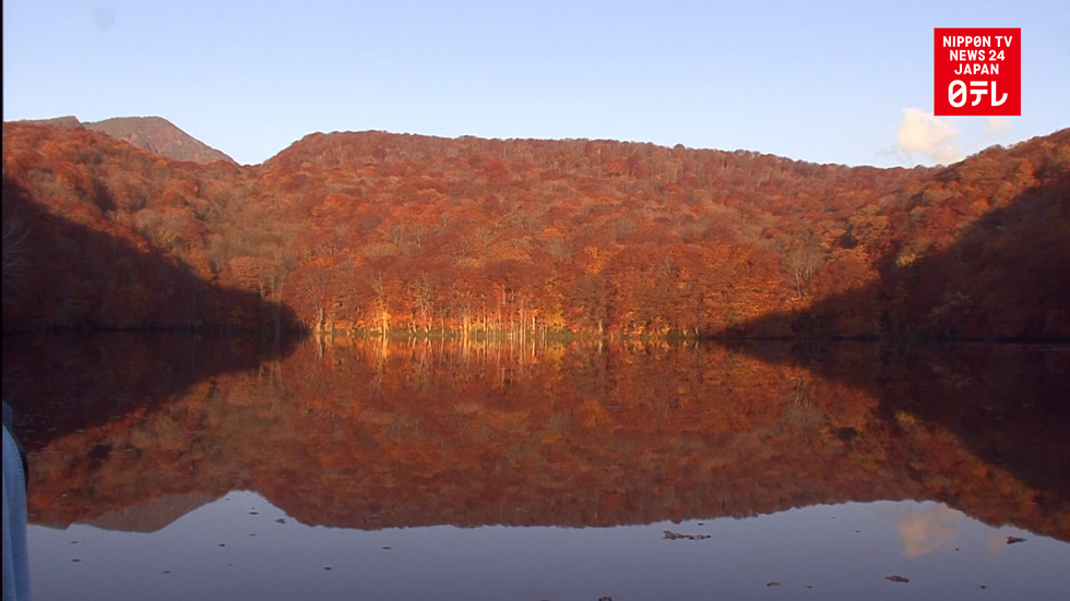 Rare fall foliage reflected in a northern lake attracts photographers from across Japan.
