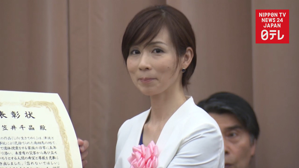 Filmmaker Chiaki Kasai wins the Mika Yamamoto journalism award Saturday for her documentary on survivors of the 2011 Gre...