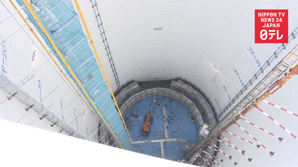 An emergency exit for the maglev Shinkansen line is shown to the press for the first time.